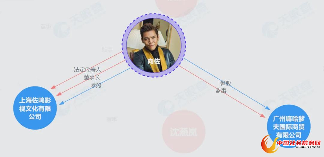 公开资料显示,向佐名下关联2家企业,分别为上海佐鸣影视文化有限公司、广州嘛哈爹夫国际商贸有限公司。