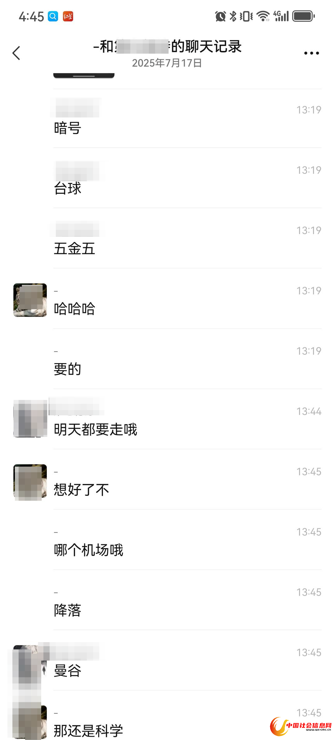 7月17日,舒畅和高某一起从重庆去往广州,在广州坐飞机,于次日抵达曼谷。据张某事后提供的聊天记录显示,19日,舒畅还在跟张某发信息沟通。其间,舒畅不断发来一些所谓“暗号”或者是微信通话录屏的内容,并备注为“保留证据”,但红星新闻记者查看视频,发现微信通话录屏,没有录下通话内容的声音,无法确认通话内容。此外,舒畅还发来一段坐着由当地人驾驶的拖车,行驶在非常泥泞的小路上的视频。同天,舒小姐发现弟弟的微信步数超过两万步,有点异常,还问弟弟怎么回事,弟弟回复一个字:“耍。”