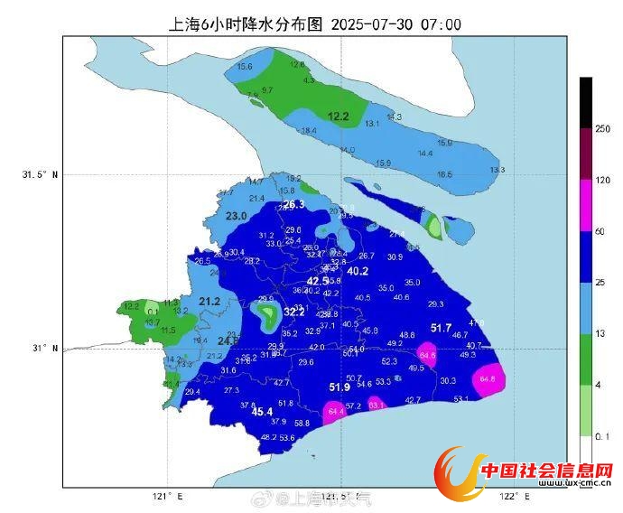 上海中心气象台2025年7月30日12时00分更新暴雨黄色为暴雨橙色预警信号:预计未来24小时内本市大部地区6小时累积降水量将达100毫米以上,暴雨黄色预警信号更新为暴雨橙色预警信号,强降雨可能引发城市积涝、农田受淹、交通拥堵等情况,致灾风险很高,请特别加强防范。