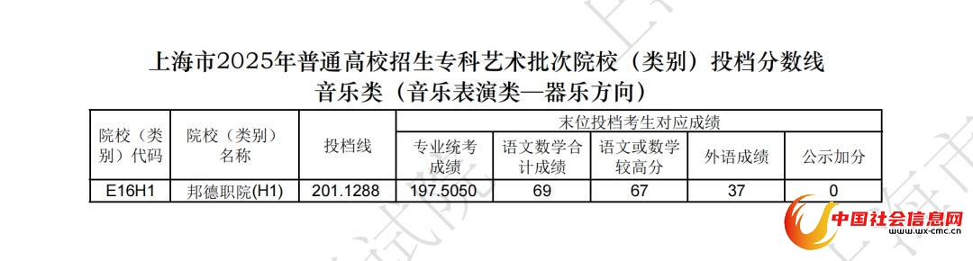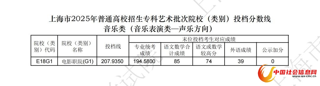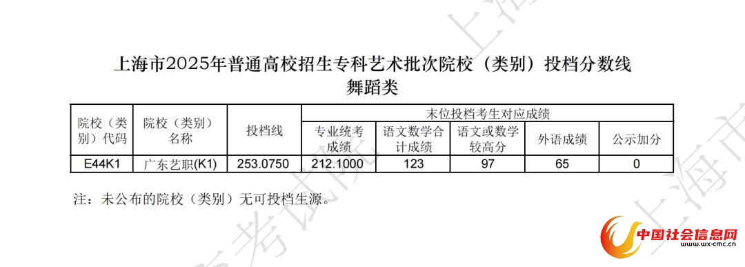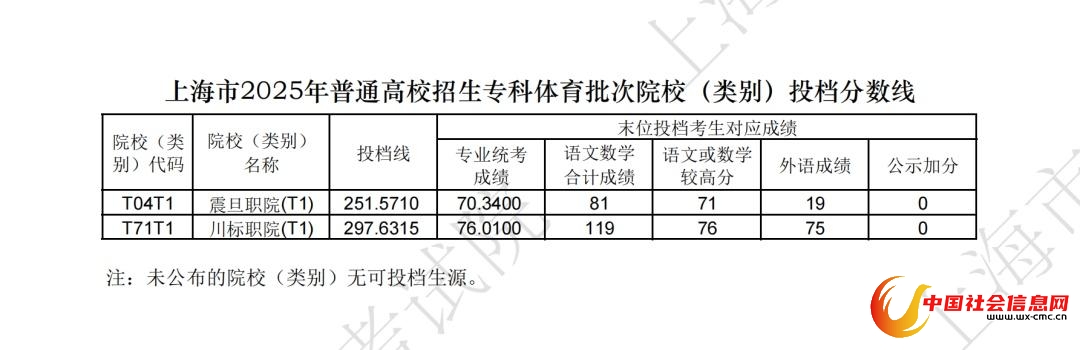沪2025年专科艺体类批次院校(类别)投档分数线公布