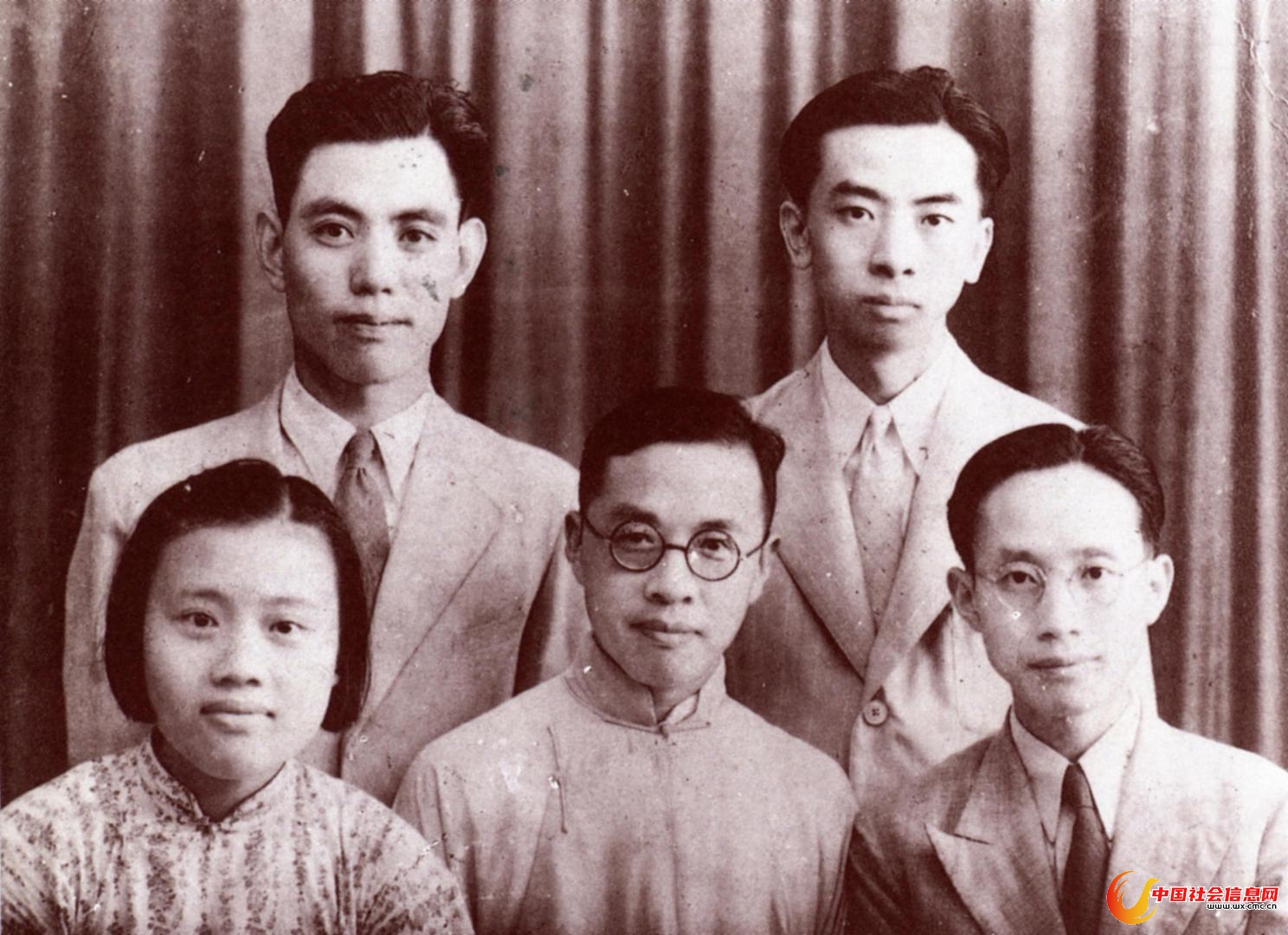 1940年6月,钱挚之子、科学家钱伟长(右一)出国前和其四叔钱穆(前中)留影 图据:视觉中国