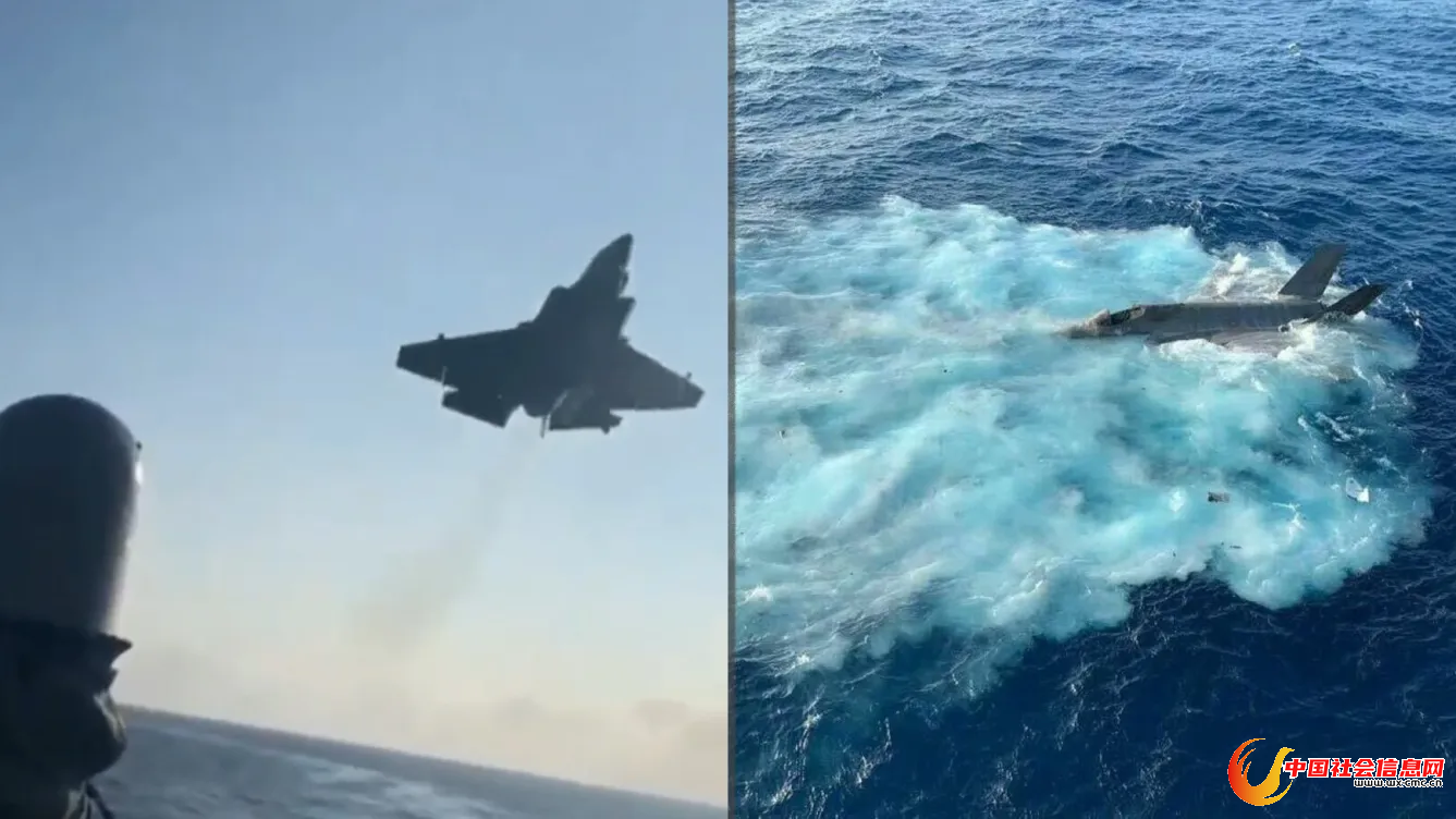 2022年,一架F-35C战机在航母上降落着舰时撞上甲板,随后坠海。