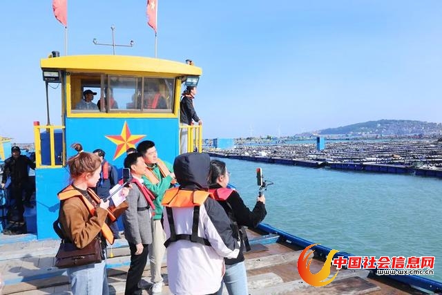 2023年11月,“福农优品·我在家乡等你来”文旅乡村网络直播活动走进平潭综合实验区,主播团乘船出海前往砂美村鲍鱼渔排,体验鲍鱼喂养,了解当地的鲍鱼养殖技术。海峡网供图