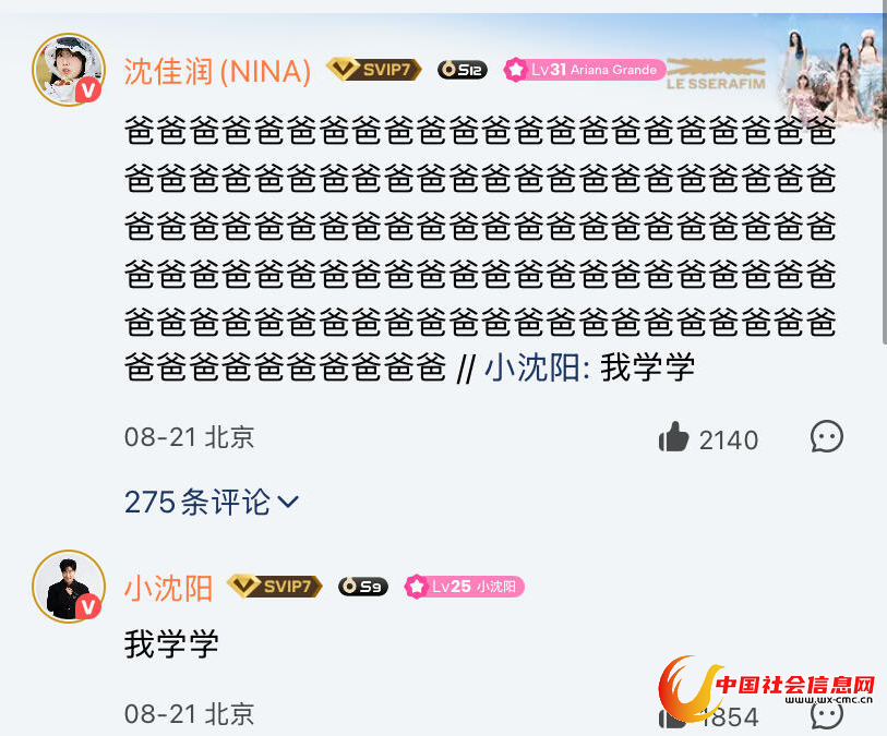 小沈阳与女儿沈佳润的评论互动
