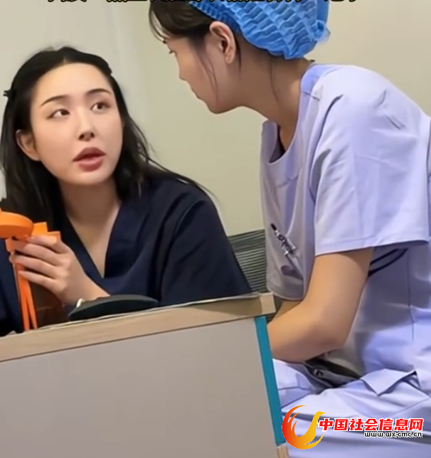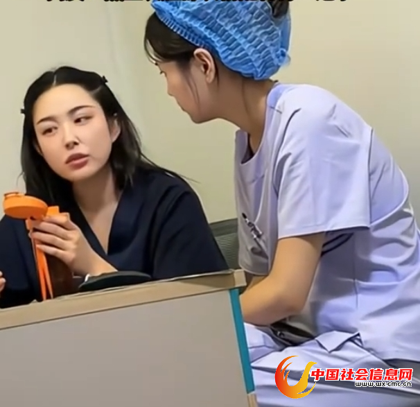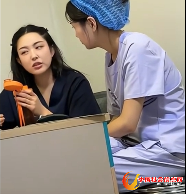 黑衣女士也是一位护士护士,和同时在清闲的时候聊天,面对镜头的黑衣护士并没有发现被偷拍,依然和同事聊天。