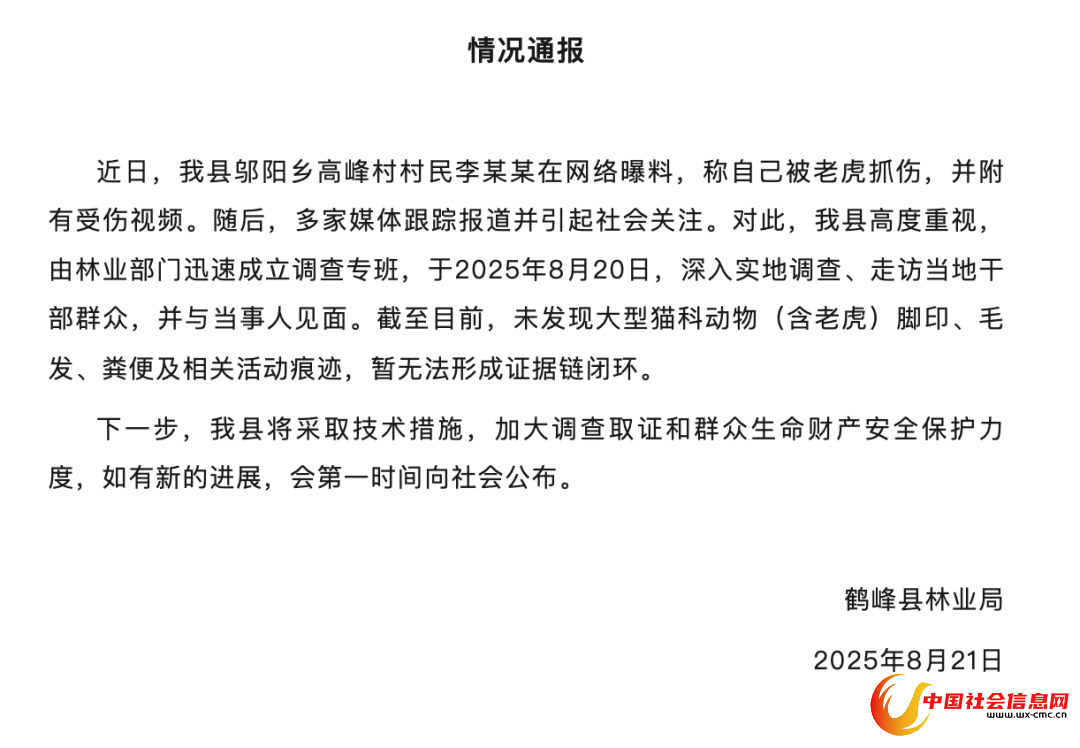 8月21日,鹤峰县林业局发布情况通报称,林业部门迅速成立调查专班,于2025年8月20日,深入实地调查、走访当地干部群众,并与当事人见面。