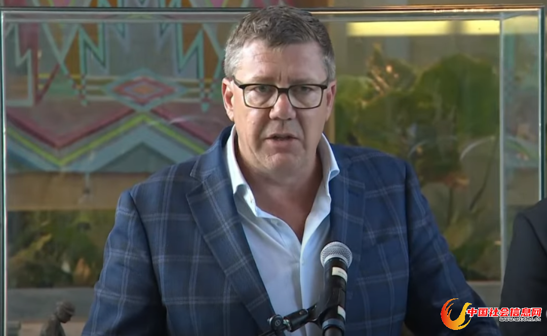 当地时间21日,斯科特·莫伊在新闻发布会上发表讲话。图为外媒发布的视频截图