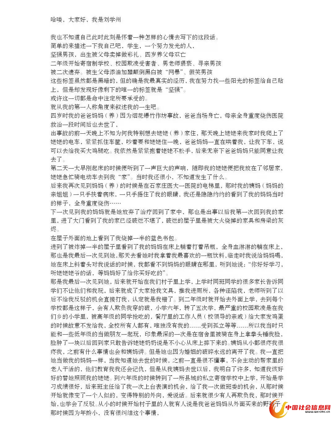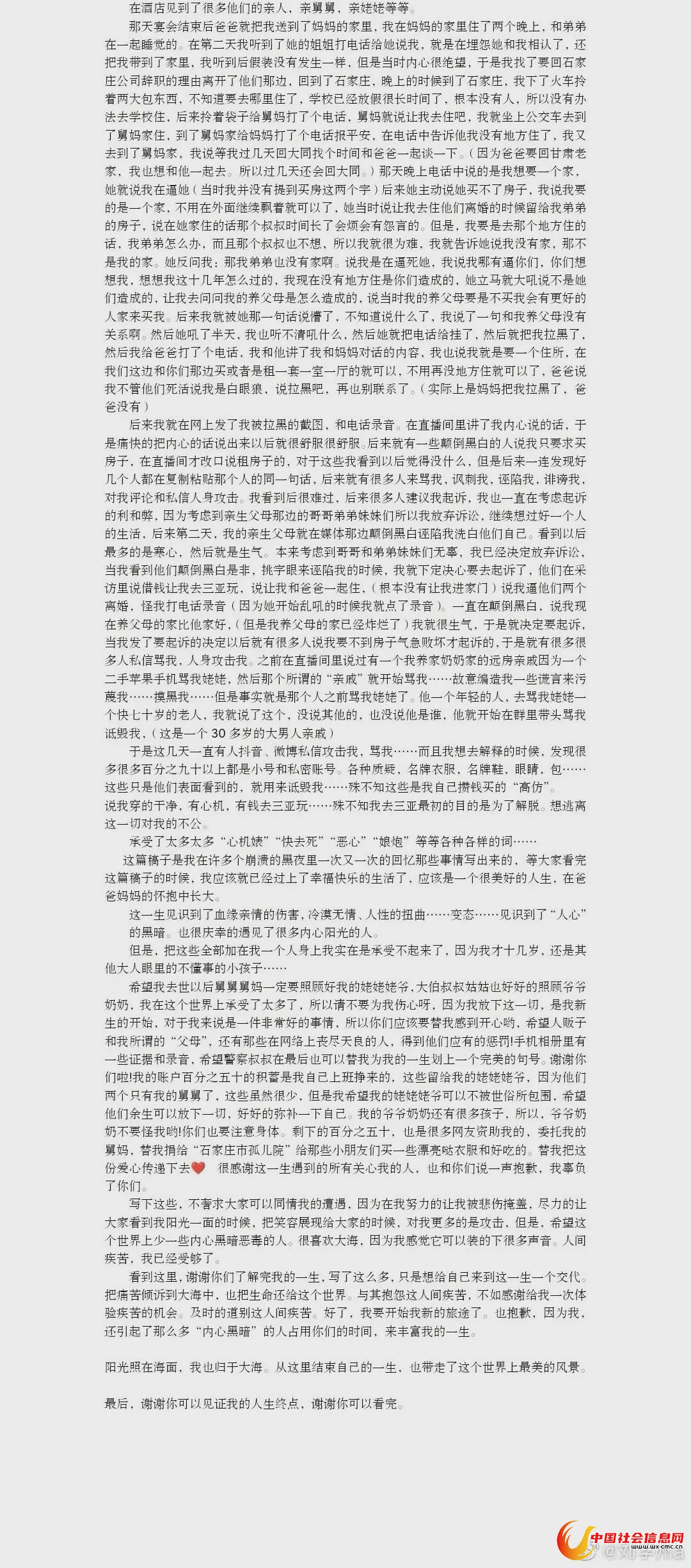 在遗书中,刘学州一个字一个字地敲下了自己15年来的悲苦。