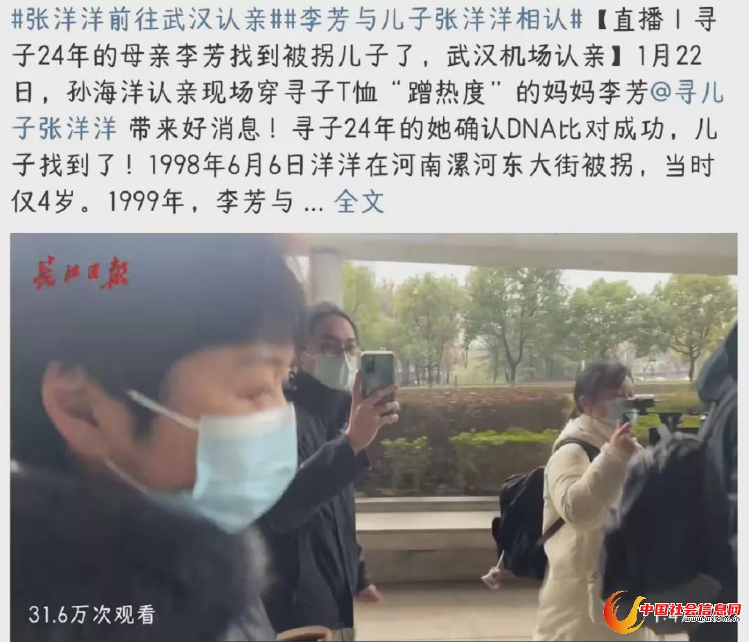喜的是寻子24年的李芳找回了儿子张洋洋,在武汉举行了认亲仪式,成为继孙海洋之后又一位成功找回亲生骨肉的父母。