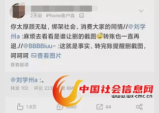 刘学州在直播中有打赏收入,也有陌生网友给他转过账捐过钱,买房风波出来后,有人说他卖惨敛财,消费网友同情心。