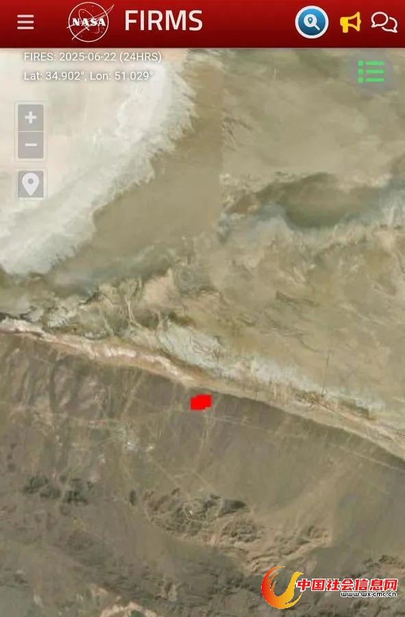 值得注意的是,美国国家航空航天局(NASA)的“火灾信息管理系统”卫星,利用红外传感器准确捕捉到美军空袭时福尔多核设施附近的爆炸热源,但有人发现热源位置距离福尔多地下核设施出入口位置偏差了约3公里,因此怀疑美军空袭是不是炸偏了。