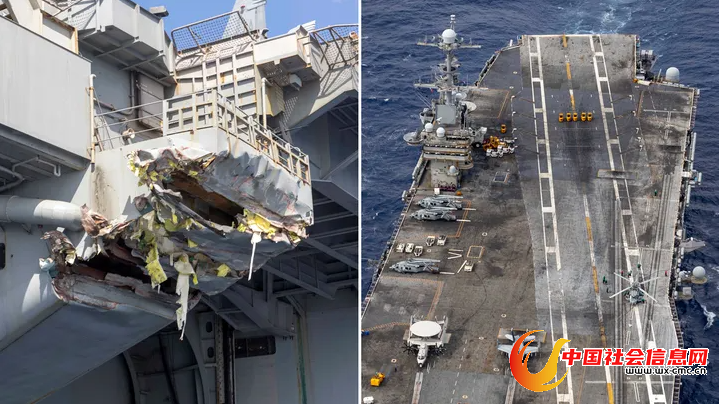 美国“福克斯”新闻网15日称,美国海军发布的最新照片显示,这艘美国航母外部可见明显的损伤,但具体情况还不清楚。美国海军从13日开始陆续发布了该航母受损后的照片,右舷升降机后部的舷台有明显撞击痕迹,右舷靠近船尾的地方有一道撕裂,沿着船舷的一根管道似乎也受到了严重损坏。美国海军学会网站称,这些只是航母受损情况的一部分,但“其他部分的受损情况相对更轻一些”。