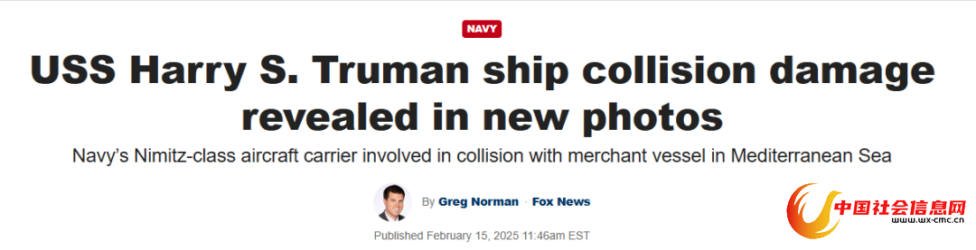 美国海军“杜鲁门”号核动力航母被撞后惨状曝光