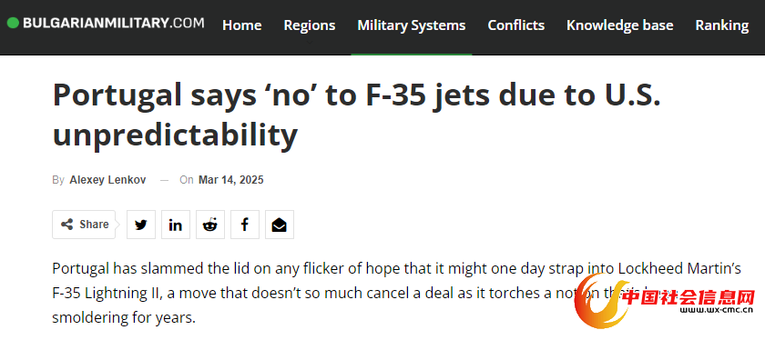 因此葡萄牙说“不”,刺破了F-35对于欧洲盟友不可替代的泡沫。“保加利亚军事”网站称,这则消息传回美国,在军工圈引发震动。匿名内部人士透露,五角大楼与洛克希德正密切关注事态。洛克希德股价此前受益于F-35出口,若更多盟友动摇,可能引发波动;而五角大楼希望通过共享F-35维系北约一体化——战机互联、基地互通。若特朗普政府的政策反复吓退更多美国盟友,五角大楼的如意算盘很可能落空。