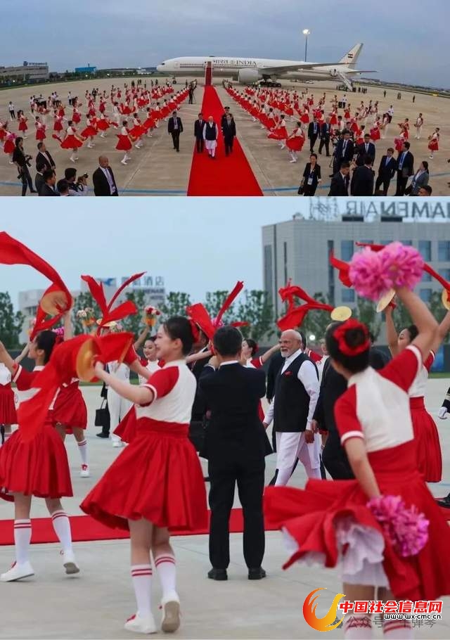 我注意到,有印度媒体就“很敏锐地观察到”:莫迪受到了中方的热烈欢迎,下飞机就是红地毯;领导人合影时,莫迪站在第一排偏中间位置;还有,中方给莫迪提供了一辆红旗高级轿车……