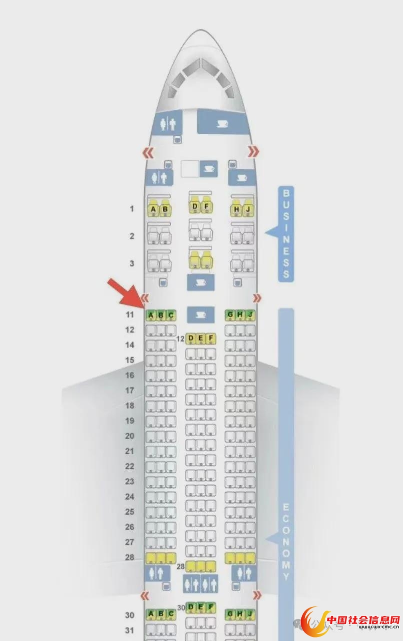 可能与他的座位有关,他坐在很靠前的位置,11A,邻近飞机左侧的紧急出口。