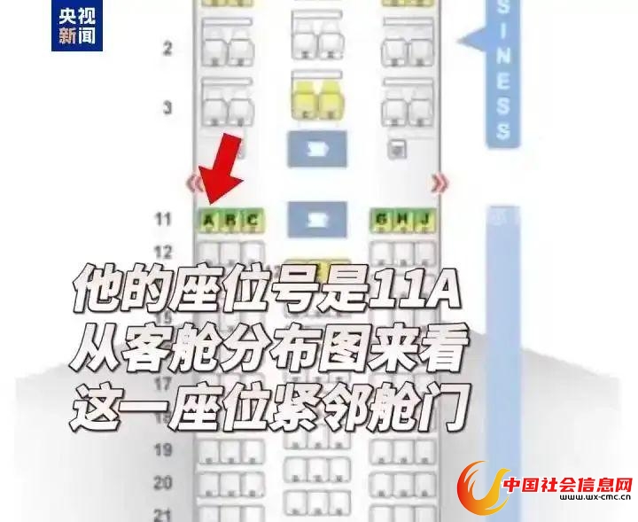 拉梅什事发时坐在11A座位,客舱分布图显示,该位置紧邻舱门。