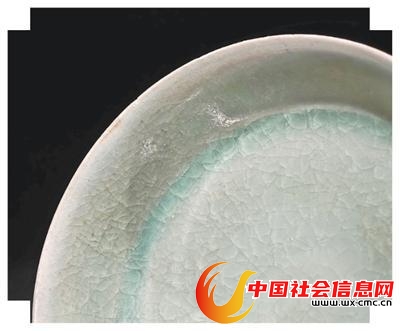 上海龙美术馆里展出的北宋汝窑天青釉洗(局部)。