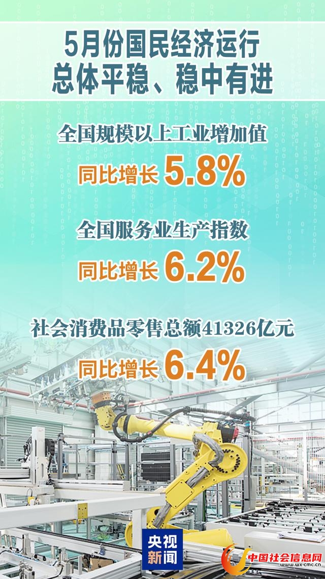原标题:《国家统计局:5月份国民经济运行总体平稳 稳中有进》
