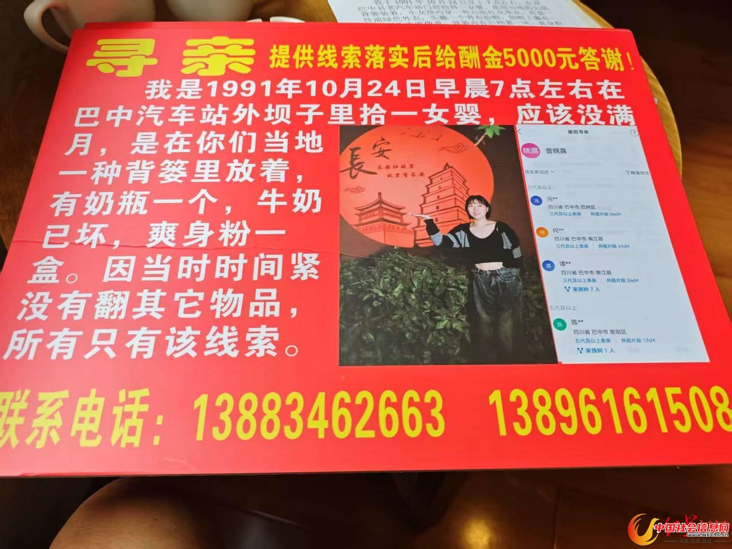 苟金水介绍,这次准备在巴中待一段时间,为了尽快找到有价值的关键线索,他悬赏5000元征集关键线索,只要找到养女的亲生父母就立即兑现。
