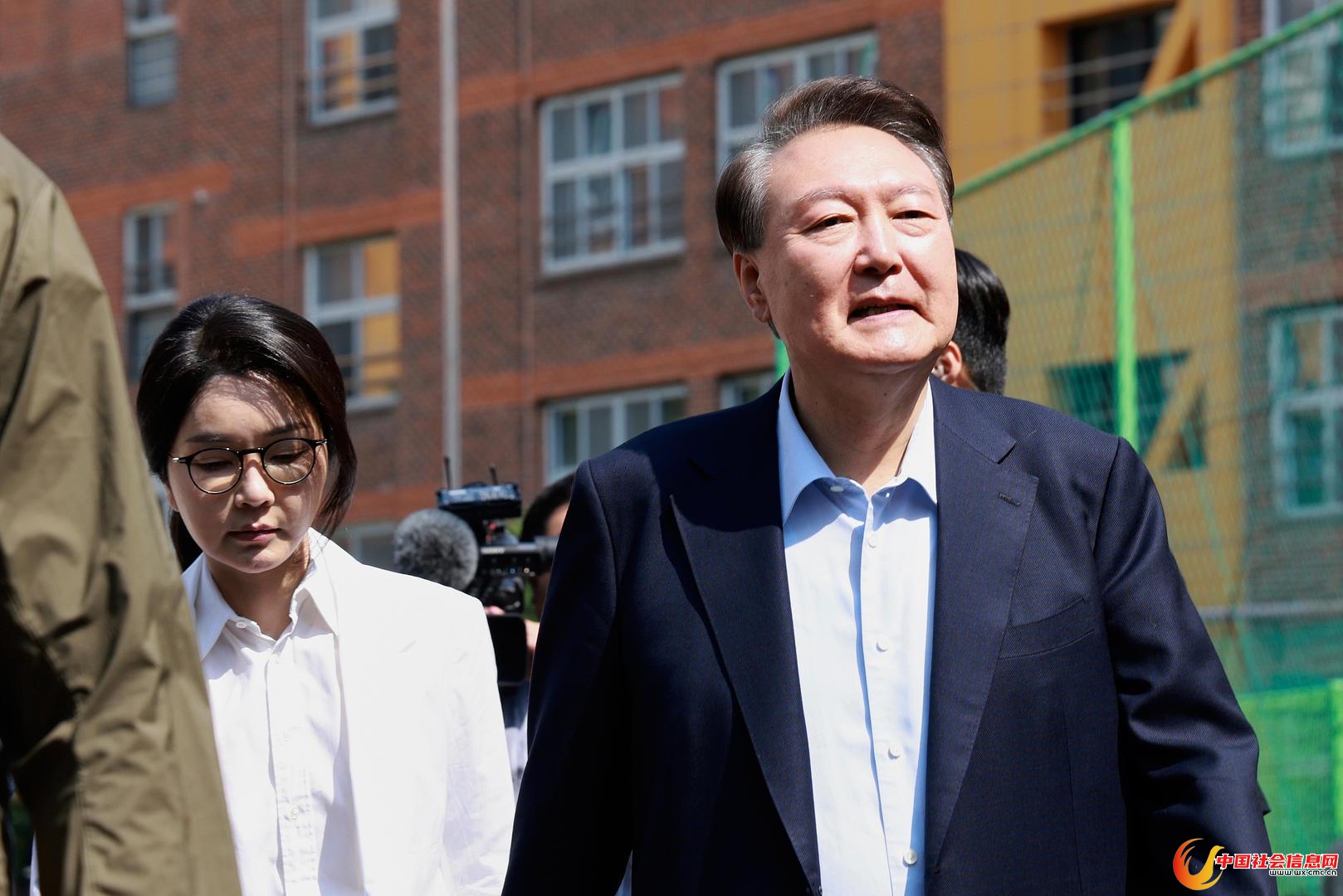 ▲当地时间2025年6月3日,韩国首尔,前总统尹锡悦与妻子金建希抵达总统大选投票站 图据视觉中国