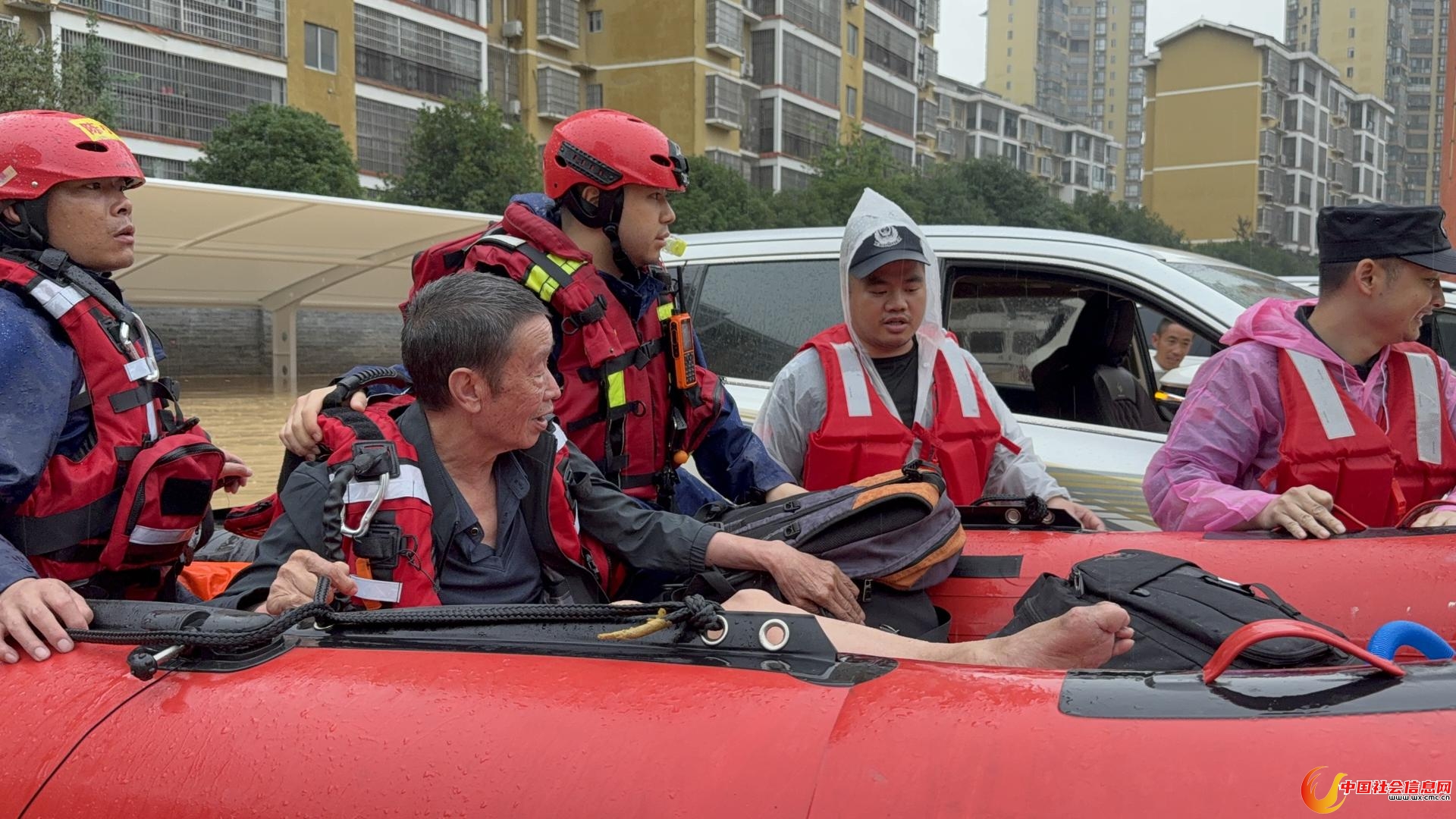 ▲救援人员在城区转移群众 图源:榕江县消防救援大队