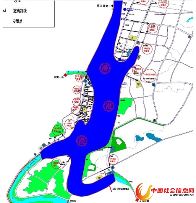 ▲榕江县防汛抗旱指挥部发布的受严重洪水威胁区域图源:“榕江发布”