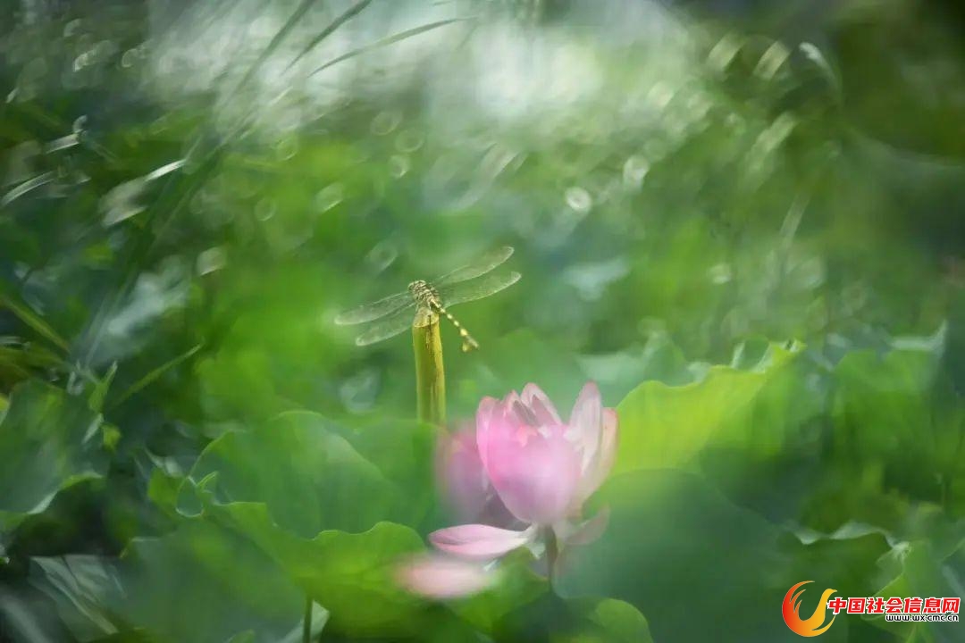 蜻蜓时而在水面上低飞掠过,时而俏皮地停驻在待放的花苞尖上,还有水鸟迈着优雅的步子,在浅水区和荷叶间逡巡,为这幅宁静的夏日荷塘图增添灵动的气息~