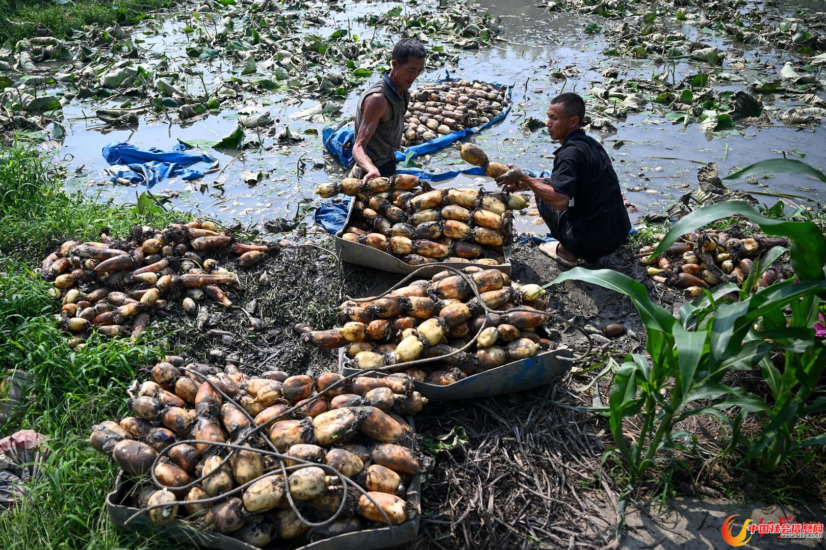 藕田深处,62岁的马德飞正弓腰在淤泥里摸索。40年的采藕生涯让他练就了“盲摸藕节”的本事,“想要完整采出,需巧用巧劲。”很多和他一样的采藕人,每年这时都会聚集在此,“每天能挖近千斤,挣五六百。”