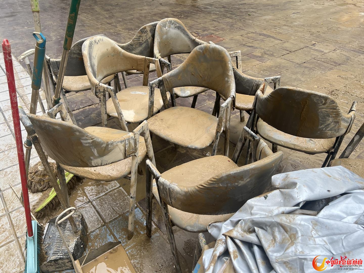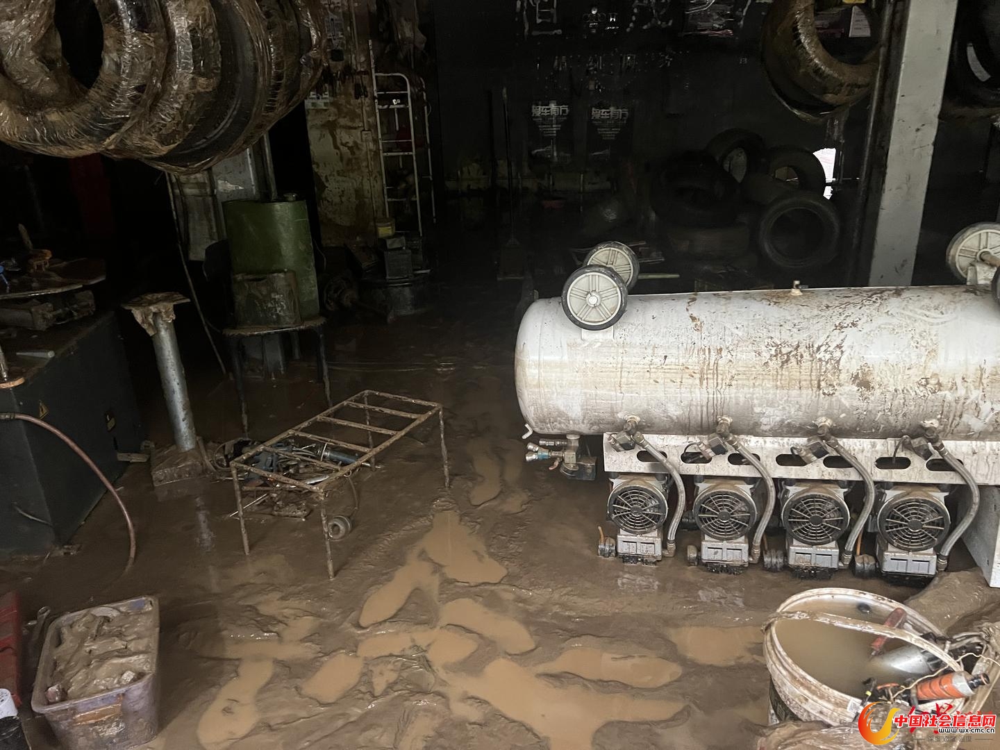 洗车店店员表示,原本第一波洪水过去后,他们的清淤工作已经进行得差不多了,店里的设备和店门口的人行道都被清理干净;但第二波洪水来了之后,店里又被淹了,之前做的工作又要重新进行。