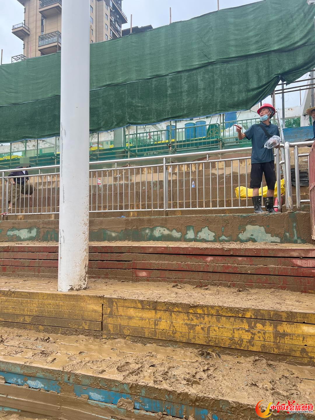 一名在村超现场负责清淤工作的人员介绍,原本28日上午球场的清淤工作已经进行得差不多了,结果下午第二波洪水又来了,他们只能再进行清理工作。28日的洪水没有第一次严重,只到了看台第一层的位置,而上一次洪水几乎已经到了村超招牌处。