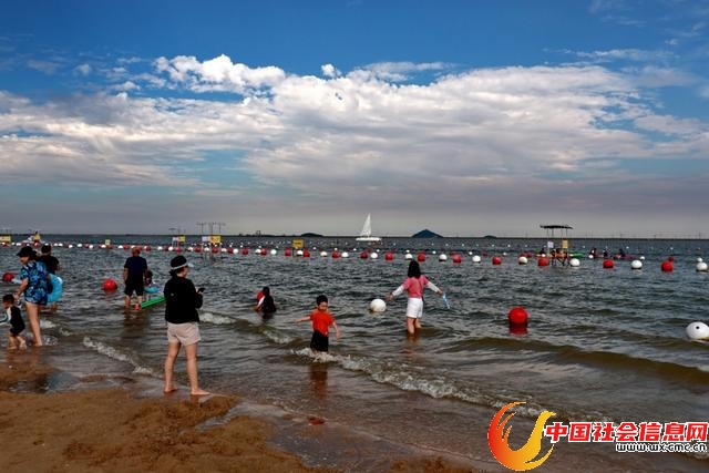 在正式开放的泳区,人们或畅游清澈海水或支起帐篷休闲。水上卡丁车、帆船、快艇、水上自行车和皮划艇等多种娱乐项目也备受欢迎。据统计,双休日游客人数逾万。