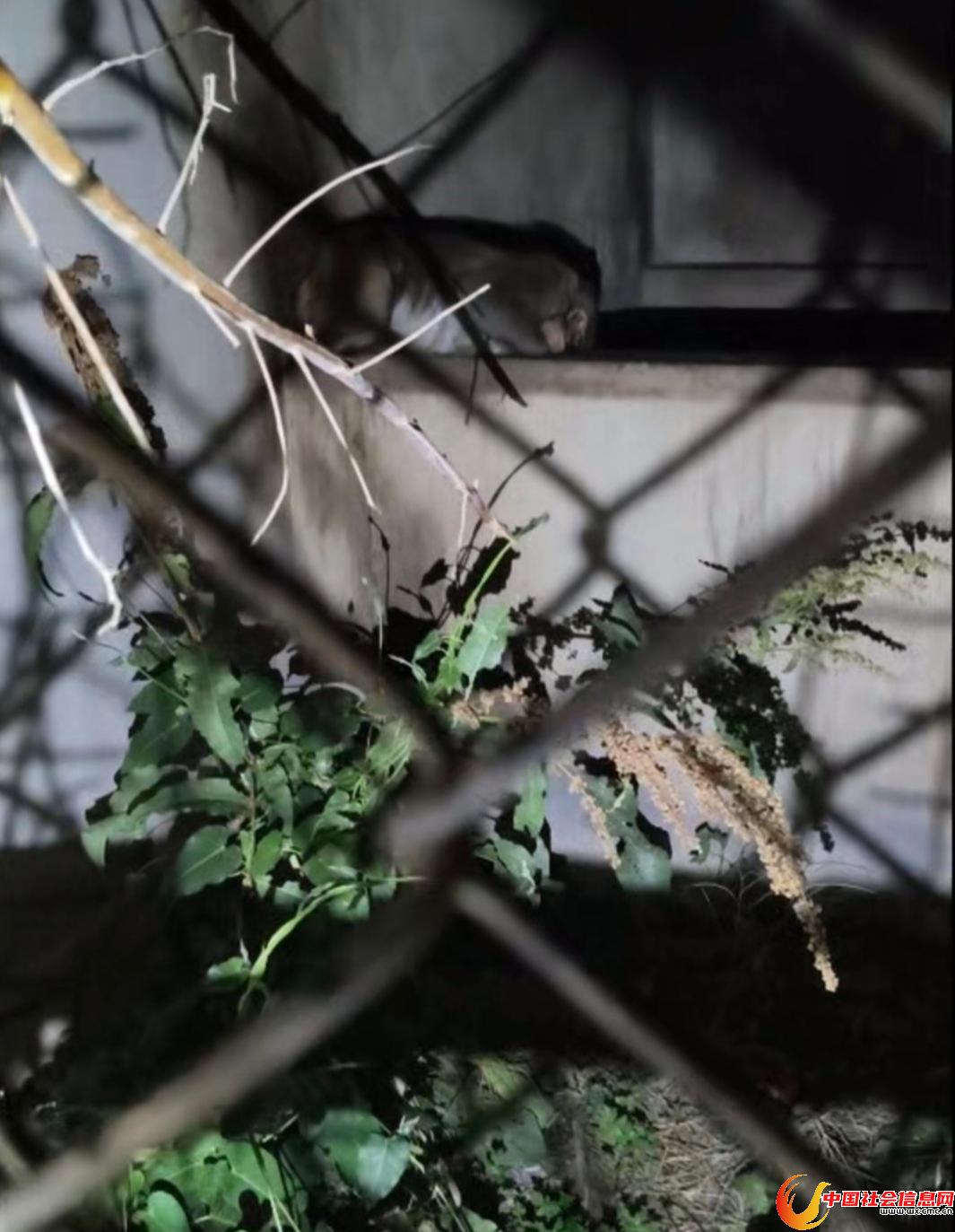 视频拍摄者“丸子”在社交平台上的表述中,这三只动物身处绥中县一个“废弃动物园”里,“生活环境很差,并且无人投喂,被圈在笼子里”。视频中,一个用铁丝网搭建的笼舍里,一只猴子趴在笼子里的台沿上睡觉,笼舍里长有荒草。笼舍外,是一条布满垃圾的狭窄过道,过道另一侧同样用铁丝网搭建的笼舍里,两只豪猪正在“吱吱”地嚼食绿色的树枝。