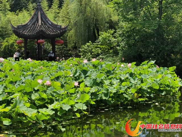 古猗园内的荷花目前开了一两成。 陈玺撼摄