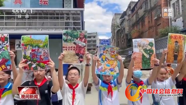 在送别的人群中,还有不少学生。他们把紧急救援群众、清理淤泥等场景都画了出来,双手高举着自己的画,向救援队表达谢意。