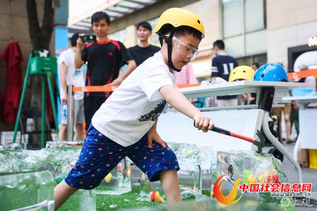 小朋友们在巨型冰块装置中凿出“时令鲜果”。