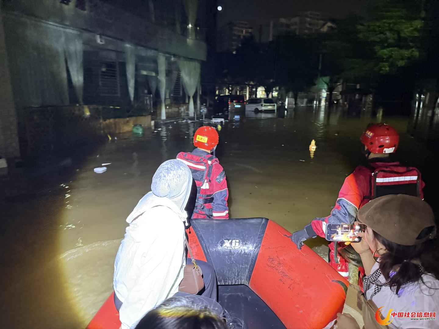 消防救援人员冒着暴雨抵达现场后,迅速展开救援。针对积水区域分散、部分群众行动不便的情况,救援人员采取“单个背人”与“皮划艇转运”相结合的方式,在积水中开辟“生命通道”,争分夺秒疏散被困群众。经过紧张救援,紧急救援转移受困群众200余人至安全地带。