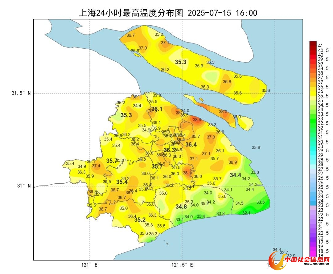 上海今天多云为主。早间气温还比较舒适,大部分地区的最低气温在22~25℃之间,是除中心城区外7月以来最“凉”的一个清晨。白天吹西南风,升温明显,徐家汇站最高气温定格在了36.3℃。