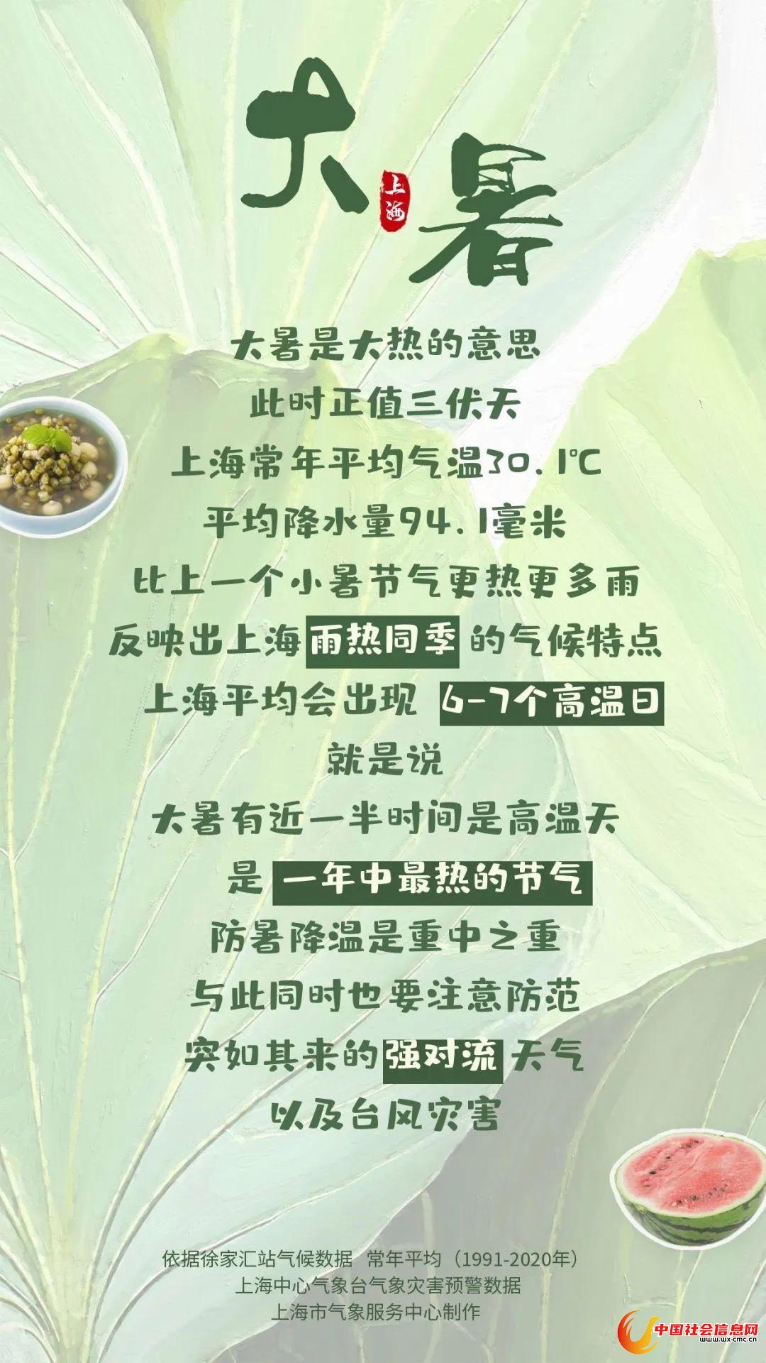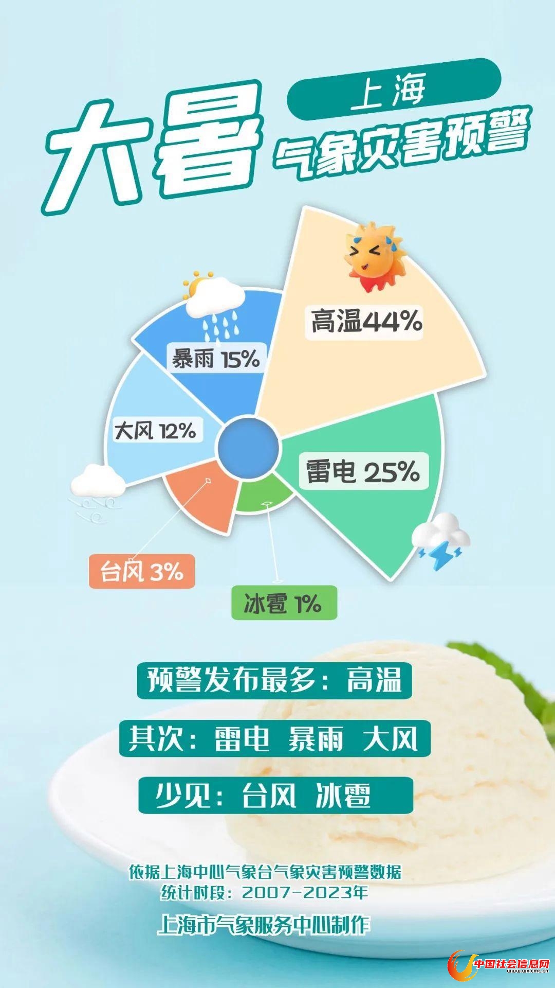 今天也进入了廿四节气中的“大暑”。气象统计数据显示,“大暑”是上海一年中最为“炎热”的节气,15天中常年平均有接近一半的日子是高温天。而在“大暑”节气里发布的气象灾害预警中,高温预警也是占比最大的,为44%。但今年的情况会有所不同。