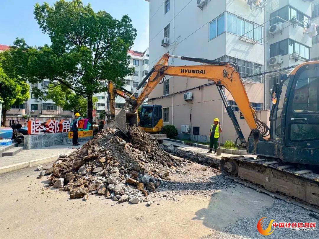 松江区天虹二村改造现场机械轰鸣,施工人员操作挖掘机破开路面,有序进行沟槽开挖、管道铺设和热熔连接作业。“该点位工程已近尾声,预计本月末完工,”松江自来水有限公司施工管理负责人沈忱介绍道。