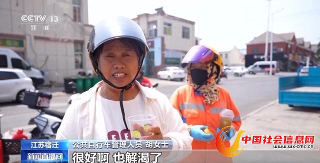 公共自行车管理人员 胡女士:送的绿豆汤喝过了,很好啊,也解渴了。