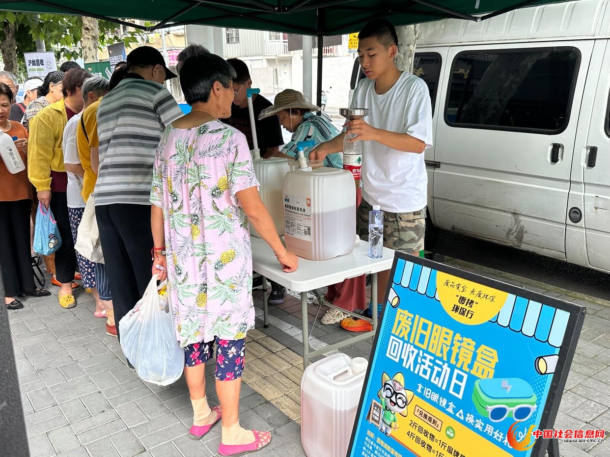 活动也吸引了众多闻讯专程前来的居民。他们带来了家中闲置的眼镜盒,有的还一并携带了塑料瓶、纸壳、旧报纸等可回收物。居民们自觉排队、分类投放,展现出良好的环保意识。