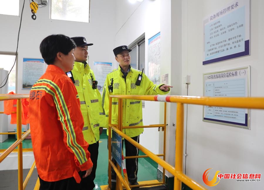 金山分局象州路派出所民警对防汛泵站开展安全检查