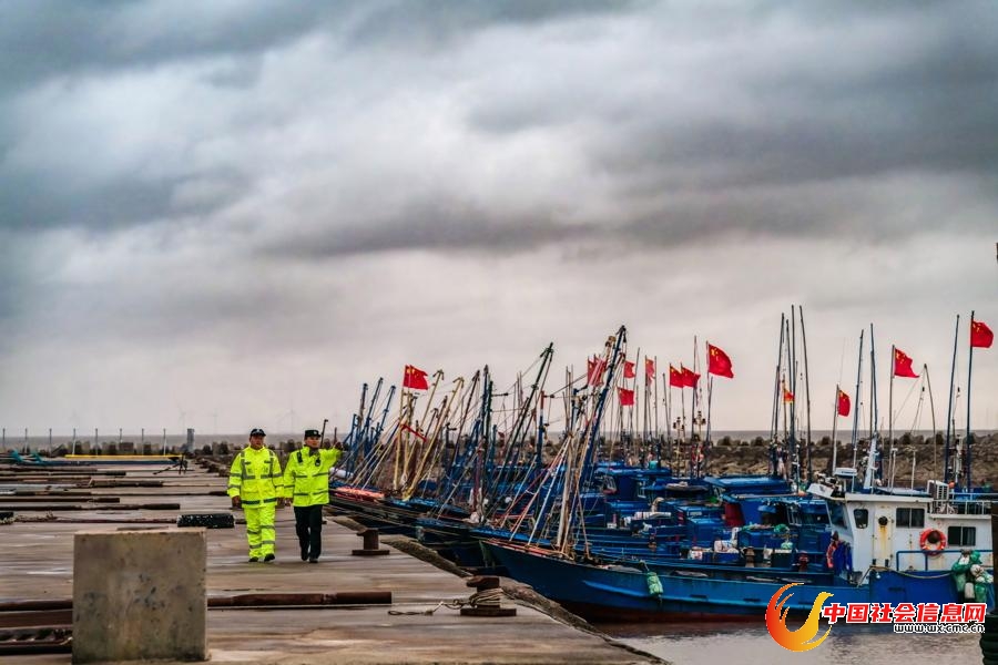 奉贤海湾派出所民警在台风来临前夕,对金汇港闸内的渔船开展检查,劝离船民