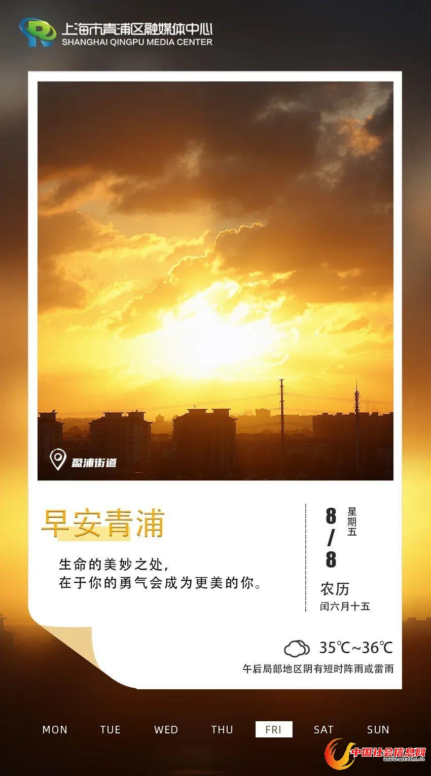 据青浦区气象台预报:今天(8月8日),午后局部地区阴有短时阵雨或雷雨。西到西南风3-4级。最高气温35-36度,最低气温28度。相对湿度60%-90%。