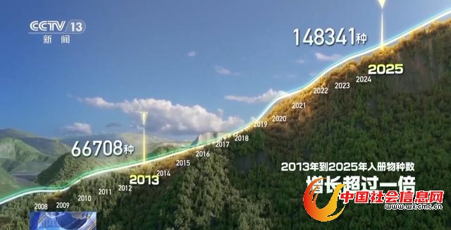 如今,《中国生物物种名录》上入册的生物种数,从2013年的6.7万种,增长到2025年的14.8万种,增长超过一倍,更多生命被写进中国的生态版图。
