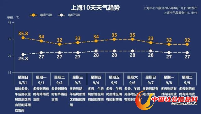 下周三起:副热带高压东抬再发力,最高气温在35℃附近,,申城又将迎来一波“秋老虎”。