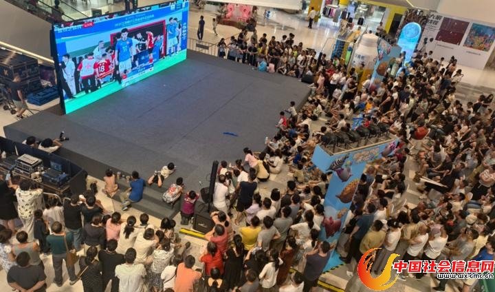 昆山一家商场现场直播“苏超”比赛苏州队对阵扬州队的比赛。本报记者 余萍 蒋文超 摄