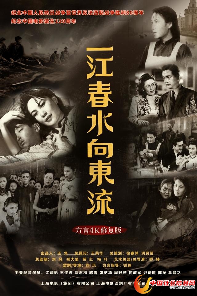 此次全新配音的《一江春水向东流》由上海电影译制厂制作,是上译厂“经典焕新”系列工程的第三部作品,由上海电影(集团)有限公司授权、上海市教育基金会“郑君里电影公益(专项)基金”资助。