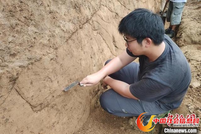 潘志威在焦家遗址的探方内刮面。(资料图,受访者供图)